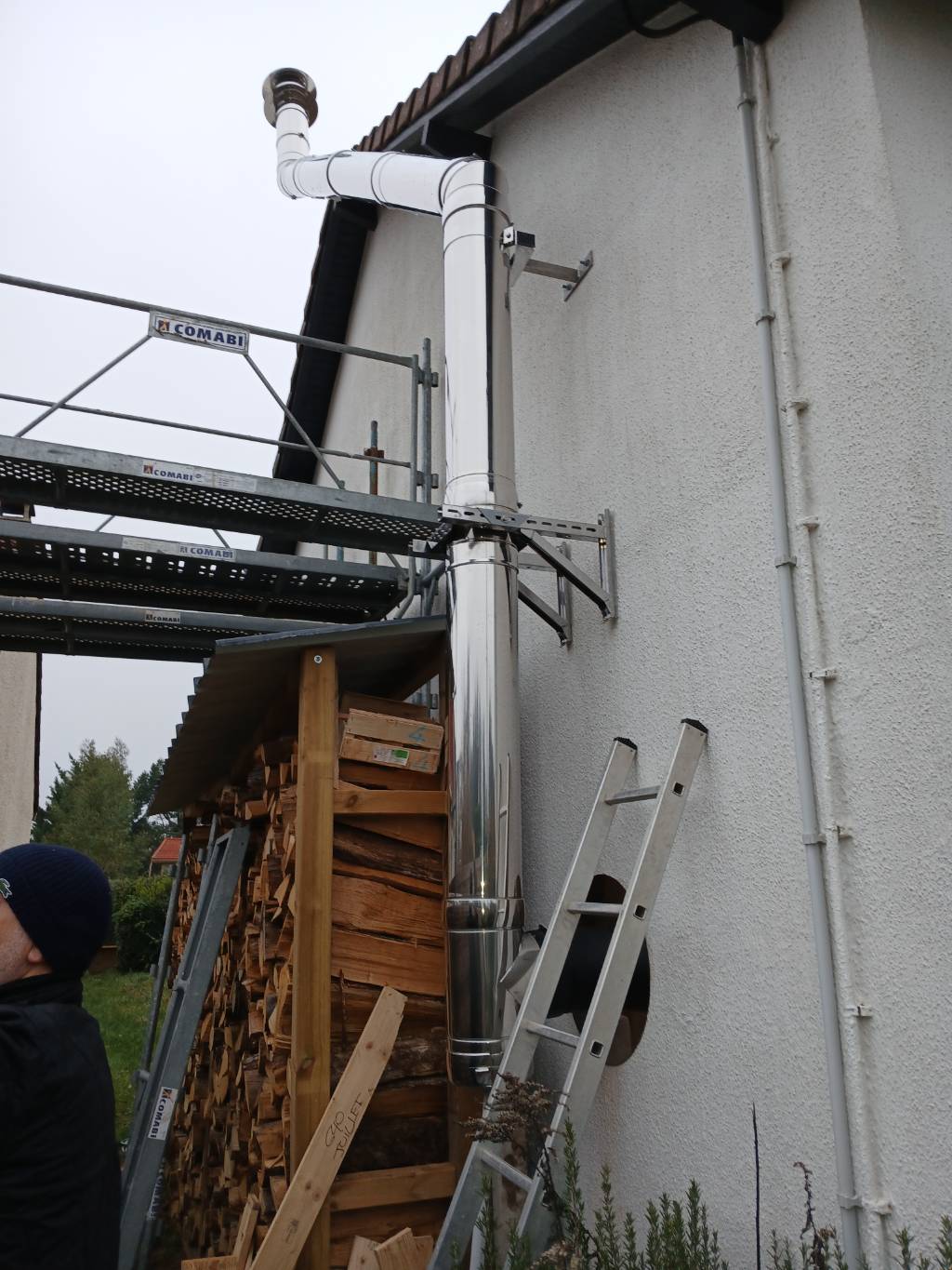 - Installation de la fumisterie extérieure en tuyaux inox isolés